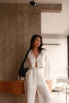 Blusa Virginia Zahi, com modelagem de amarração, manga comprida reta bem soltinha. A peça é dupla na parte da frente, não fica transparente.