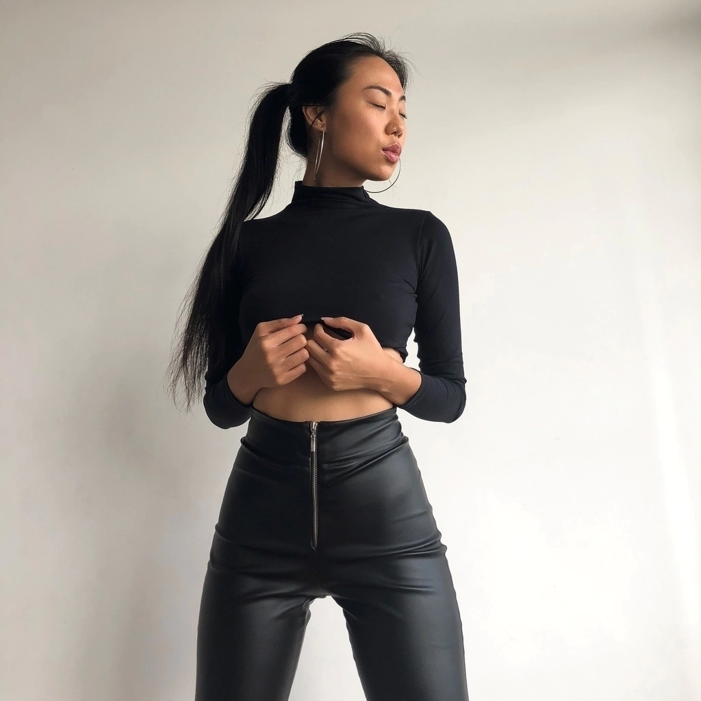 Cropped vivi zahi, confeccionado em malha viscolycra, golinha alta, modelagem justinha e mangas longas. Para montar um look sem erro! Peça moderna e atemporal.