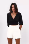 Shorts Laura, aquela peça clássica que todo mundo precisa ter. Confeccionado em crepe alfaiataria, modelagem curtinha. Possui cintura alta, bolsos frontais e cós com passante para o cinto. O shorts na cor off white não possui forro, a dica é usar com calcinha shorts ou cor neutra.