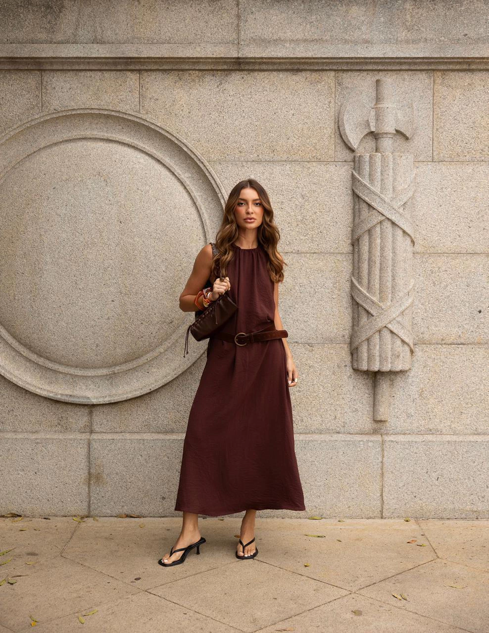 Vestido midi/longo com decote halter, confeccionado em crepe com um leve amassadinho. Modelagem fluida e alça regulável. Perfeito para qualquer ocasião. Sofisticado e cheio de estilo!