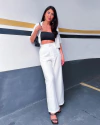 Wide leg martina, é a peça curinga que estava faltando no seu guarda-roupa. Modelagem wide leg, essa calça é confeccionada em crepe alfaiatariaria , cos acinturado e bolsos frontais.